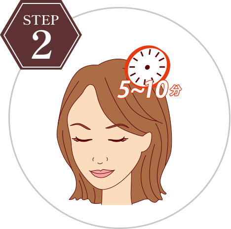 適量を髪全体につけて、よくなじませます。