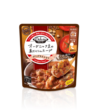 トマトの酸味と炒め玉ねぎの甘さが調和。オーガニック豆のスープ