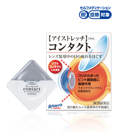 「ロート アイストレッチコンタクト」は、コンタクトレンズをしたまま点眼できる目薬。コリ固まった目の疲れをストレッチするように、ネオスチグミンメチル硫酸塩がピント調節筋の疲れをほぐし、緊張し疲労した目をおだやかな状態に治してしてくれます。目の疲れ、コンタクトレンズ装用時の不快感に。