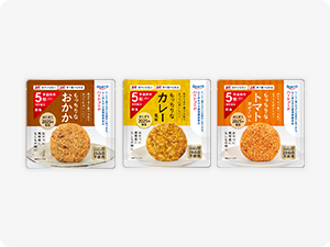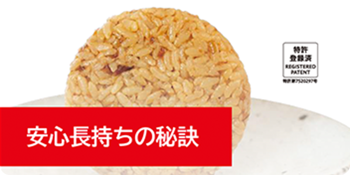 なぜなら あけてすぐ⾷べられて ふつうにおいしいから。 いつもの“おにぎり”で おやつや朝⾷、携帯食にも オススメです。
