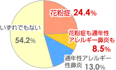 また「父親のみが花粉症の子ども」は23.4%が花粉症を発症していますが、「母親のみが花粉症の子ども」は、32.8%が花粉症という調査結果が浮かび上がってきました。