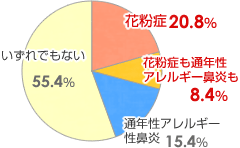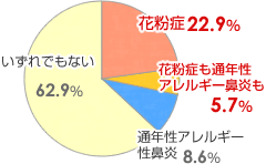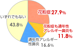 10~16歳の子どもに限定して、出生順と花粉症発症について聞いたところ、第1子では39.7%、第2子は29.2%、第3子は28.6%が花粉症であると答えました。第1子が一番アレルギー体質になりやすく、第2子、第3子と兄弟姉妹の数が増えるにつれて、上の子から感染症がうつるので強くなりアレルギー体質にはなりにくい、と考える「衛生仮説」に近い結果となりました。