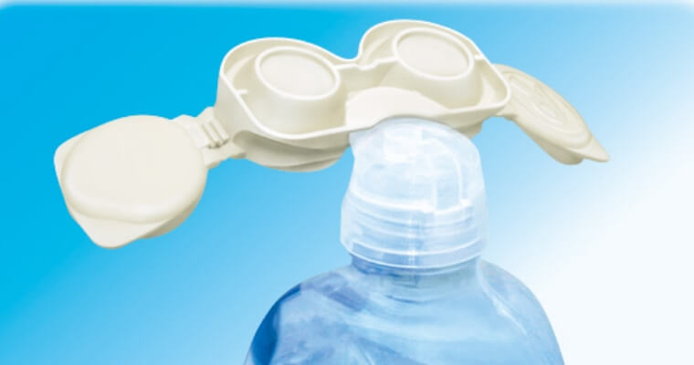 コンタクトレンズケア剤では、レンズケースをボトルのキャップに差し込んで、しっかり乾燥しやすく。レンズケースも清潔に保つことが大切だからこそ、毎日のレンズケアが簡単・快適な工夫をしています。