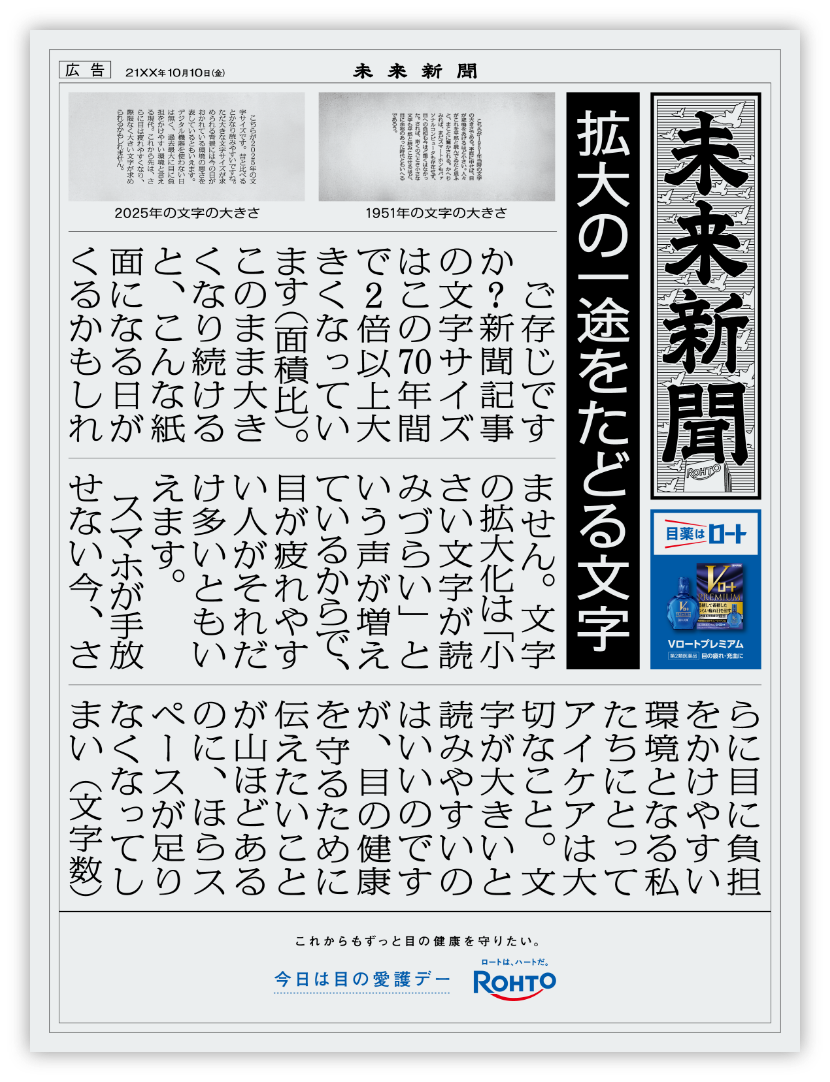 10月10日は、目の愛護デー。アイケアの大切さを伝えたいから未来を先取りし過ぎた新聞広告を作りました。