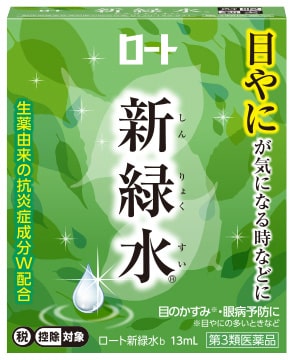朝起きると「目やに」が出て目が不快。最近「目やに」が増えてきた気がする。そんな「目やに」は、年齢などで涙の分泌量が減ったことにより、細菌やほこりなどを涙でうまく排除することができず、知らない間に目が炎症を起こしているサインかもしれません。ロート新緑水は目やにの悩みを考えた処方設計。ダブルの製薬由来の抗炎症成分※6が炎症をしっかり鎮めて、目のかすみ※1、眼病予防に効果を発揮する目薬です。