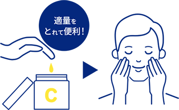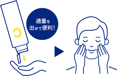 洗顔後に化粧水等でお肌を整えた後、 適量を手のひらにとり、気になる部分または全体になじませてください。