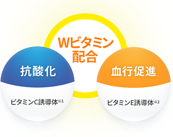 Wのビタミン有効成分を配合。 一般的には壊れやすく不安定なピュアビタミンC※1を、 ロート製薬の長年の研究により安定して配合することに成功しました。 このビタミンCそのものであるピュアビタミンC※1が ぐんぐん角層の奥まで浸透します。