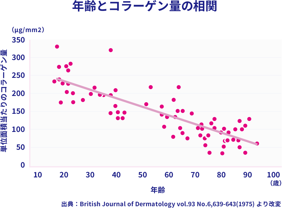肌をはじめ、骨、血管、頭皮など様々な部位に存在します。肌では真皮の約70%がコラーゲンです。