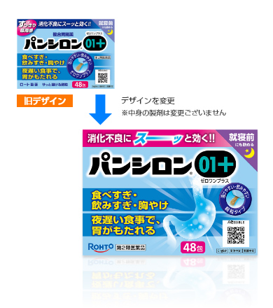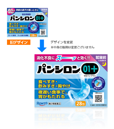 「パンシロン01プラス」は、食べすぎ・飲みすぎ・胸やけや、夜遅い食事で胃がもたれるなどの不快な症状に効く胃腸薬です。胃をスーッとさせる速効性制酸剤と持続性制酸剤、荒れた胃粘膜を整える粘膜修復剤と健胃剤、さらに消化を促進する消化酵素など、胃腸薬の基本機能に必要な有効成分をバランスよく配合しました。すっきりとのみやすい服用感です。