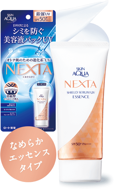 しかし、スキンアクアネクスタは次世代の日やけ止めとして環境問題にも、お客様ニーズにも向き合うことが使命だと考え、ベース処方を徹底的に見直し試作を重ね、長年の経験で培った製剤秘術により高い日やけ止め効果や使い心地の良さを両立させた日やけ止めを開発しました。