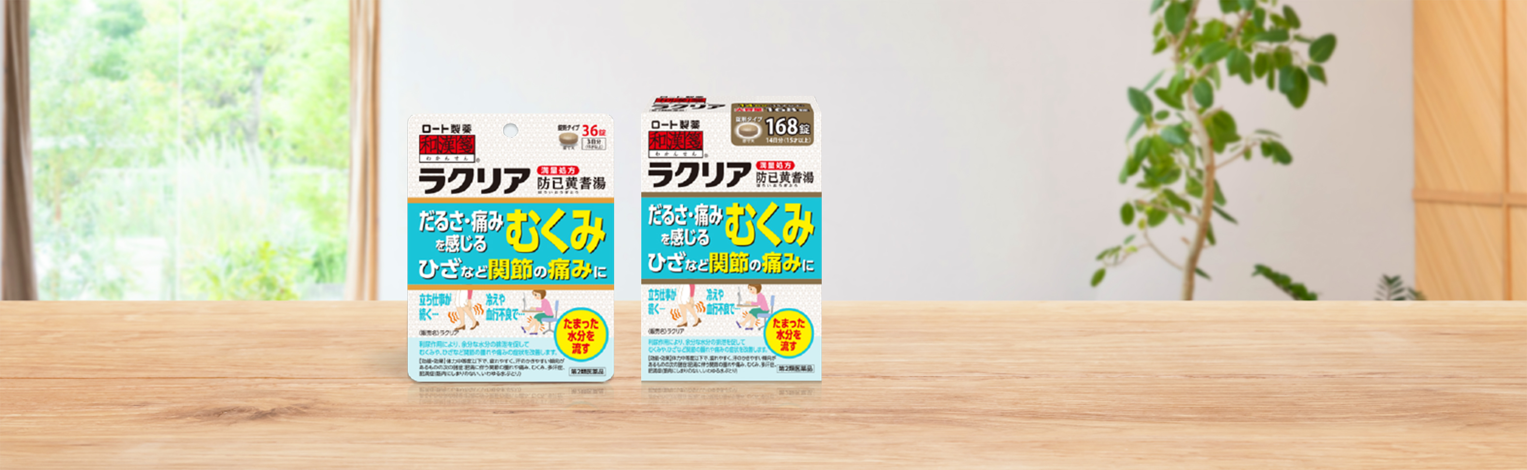 ラクリアは、水分代謝に働きかけるボウイ、オウギ、ビャクジュツ、消化吸収機能を改善するタイソウ、ショウキョウなど、6 つの生薬からなる漢方薬。水分代謝に働きかけるとともに、消化吸収機能を整えて自分で水をめぐらせる力を生み出してくれるので、余分な水を尿として排泄しながら汗っかきの人の肥満(水太り)を改善。重だるくむくんだ身体を軽くしてくれます。